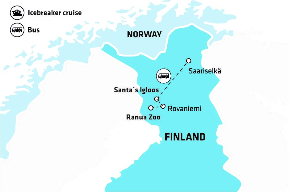 Atenção! Os serviços regulares de transfer incluídos no programa só estão disponíveis para traslados do Aeroporto de Ivalo para o Aeroporto de Rovaniemi e apenas na data oficial publicada de inicio e fim do tour. Os traslados são acompanhados por um motorista que idioma inglês e são compartilhadas com outros passageiros; portanto, pode ocorrer algum curto tempo de espera. Este serviço de transporte não é válido para passageiros com noites pré/pós ou passageiros que necessitem de traslados privados, que por um custo adicional, poderão ser reservados.